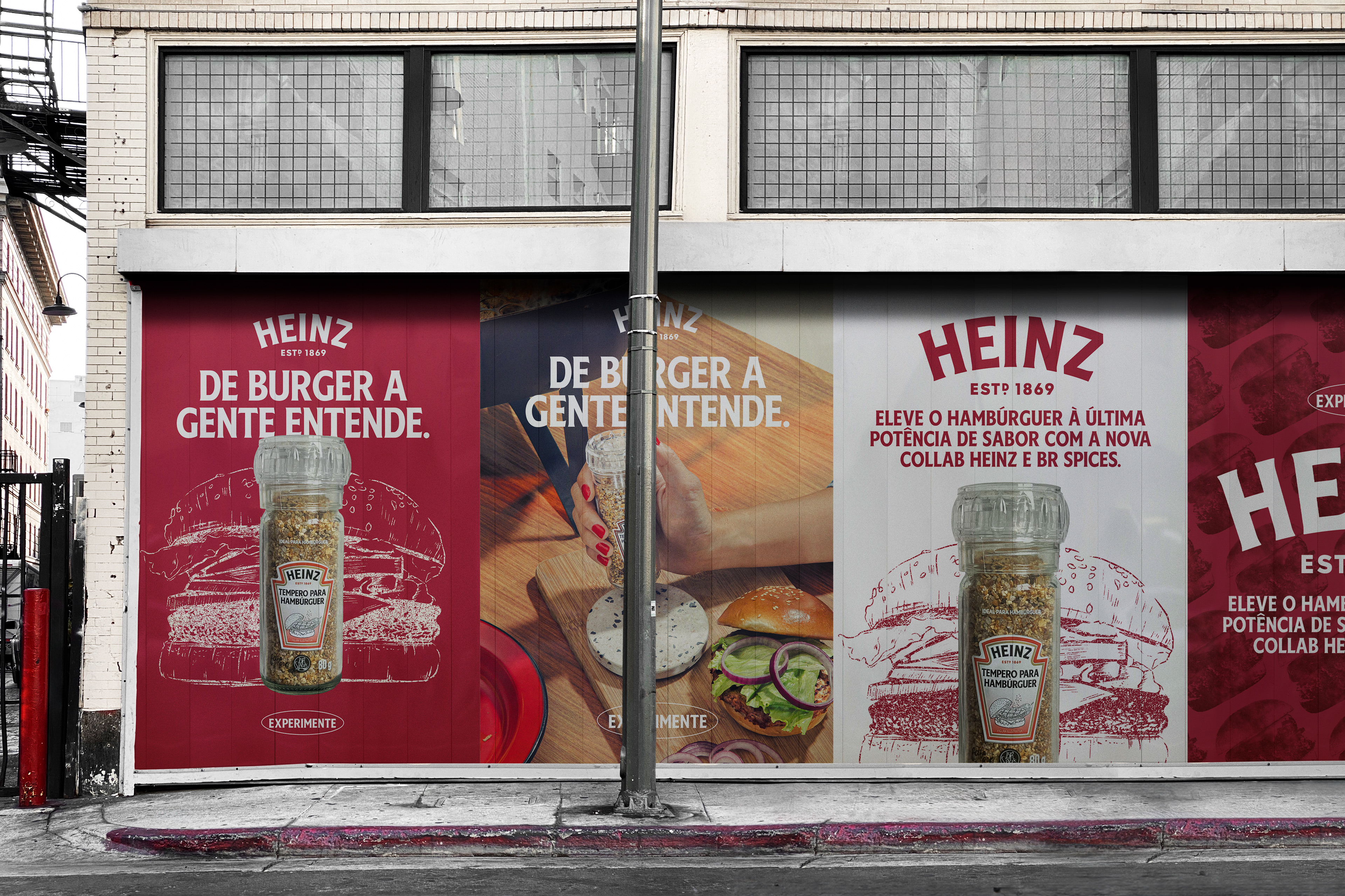 Key Visual para o lançamento da colab entre Heinz + BR Spices de tempero para hambúrguer.