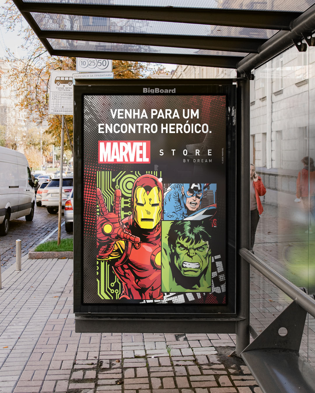Identidade Visual e desdobramento de peças gráficas para a divulgação Out Of Home da 1ª Marvel Store da América Latina .